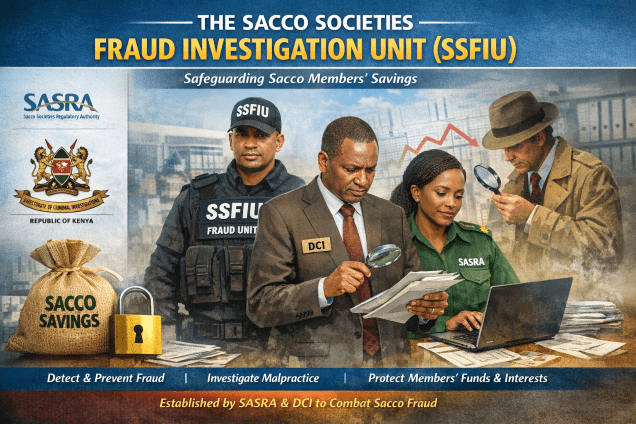 The Sacco Societies Fraud Investigation Unit (SSFIU) is a specialized body in Kenya, established by the Sacco Societies Regulatory Authority (SASRA) in partnership with the Directorate of Criminal Investigations (DCI), to detect, prevent, and investigate fraud and malpractice within the Sacco sub-sector, protecting members’ savings and improving governance. Comprising seconded DCI officers and supported by SASRA’s staff, the SSFIU works to tackle financial crimes, including cyber fraud, within Saccos, ensuring member deposits are safe.
